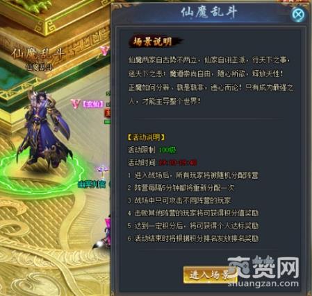每间隔一段时间将在战场中央刷出“洪荒剑尊”,攻击“洪荒剑尊”也会获得积分。