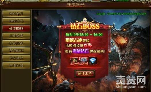 钻石、红装大放送!活动期间,每天下午15:30-16:00,出现一个钻石boss,必掉红装和海量钻石!
