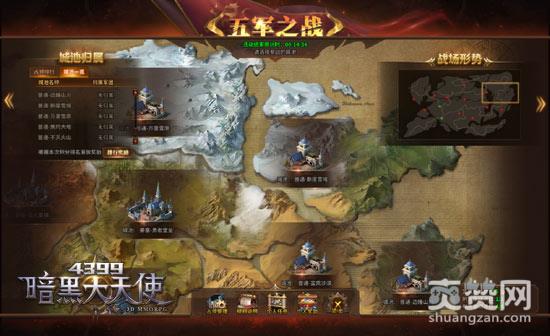 《4399暗黑大天使》五军之战震撼来袭!已进行军团匹配定级的军团可参与五军之战。进入军团大陆攻城略地,争当王者之军!