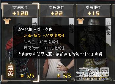 皮肤可在支援部队界面查询,皮肤品质越高,可解锁的支援属性越高。