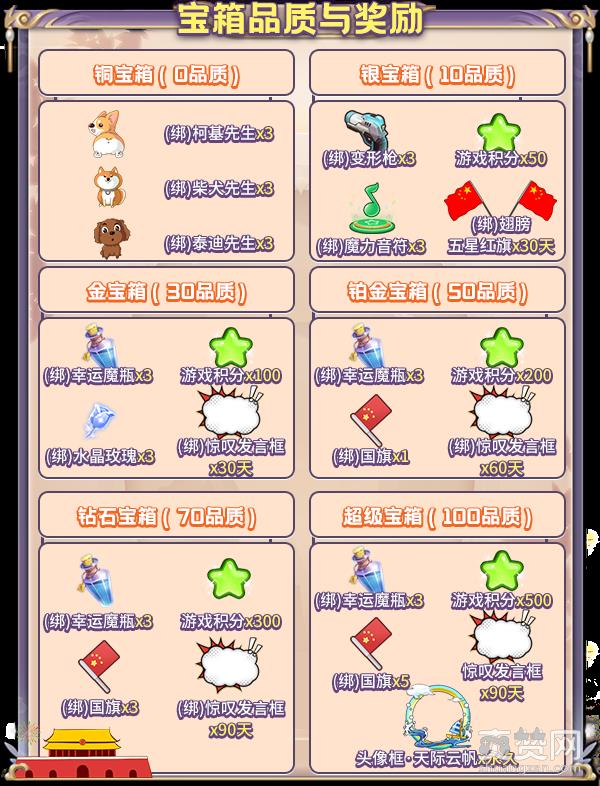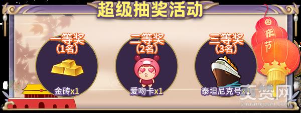 活动期间,缴纳188金币加入“赏金猎人”行列,并立即领取“赏金团大礼”!“赏金团大礼”包含一份“幸运码”,在活动结束后系统将从所有幸运码中挑选10位玩家瓜分“100万游戏币”!