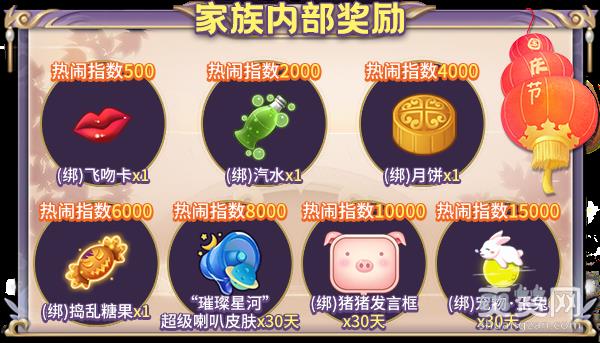 活动结束后,”热闹指数”最高的前十名家族可为家族赢得奖励!