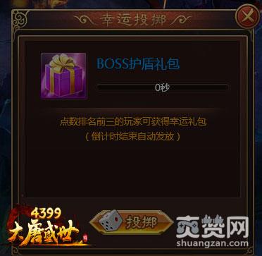 红孩儿BOSS血量达到60%和30%时将刷新幸运宝箱,通过投掷点数,选取点数最高的3名玩家获得幸运奖励!