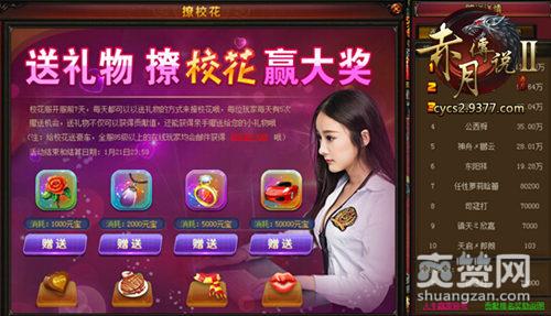 在9377自研《赤月传说2》校花服开服前7天,每位玩家每天有5次赠送给校花礼物的机会,给校花送礼,不仅能获得贡献值,还能获得校花亲手赠送的礼物哦!礼物打开后能获得丰厚的奖励。不是只有各种直播能给女神送礼物,在9377《赤月传说2》中,同样能为心仪的校花送上名贵跑车哦。