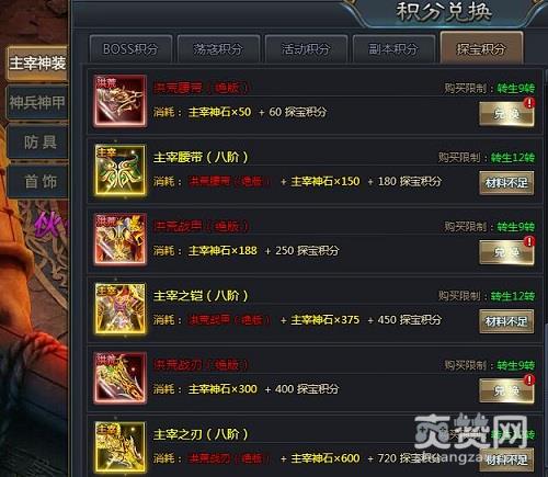 洪荒装备的获取则是四个来源,分别是开服活动获取、世界boss、跨服boss箱子、探宝积分兑换。苍穹装备的话则没有那么容易获取了,除了在充值活动中可以获得一些碎片外,只有多人副本里的苍穹副本能够获得碎片或是掉落完整的苍穹装备。
