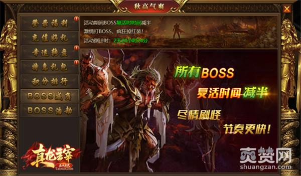 活动期间boss死亡复活时间减半,击杀1500级以上的boss和转生boss获得积分,活动结束后更加排行邮件发送奖励。