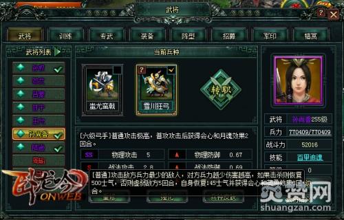 百里追魂是高级PK场上的点杀利器,蜀国的黄忠和魏国的曹节都拥有此技能,紫将时代专武的好坏尤为重要。孙尚香的专武对比其他两位百里追魂将就略显尴尬了,拥有强力点杀技能,专武却是辅助性质的,可能策划大大想让其更加符合女性将领的形象吧。