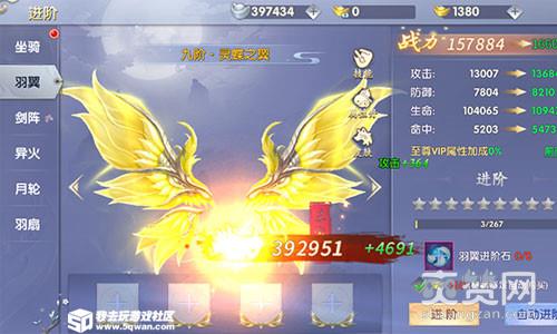 提升羽翼等级可提升海量生命属性,激活羽翼外形可以按百分比提升生命属性,并获得专有的外形显示。