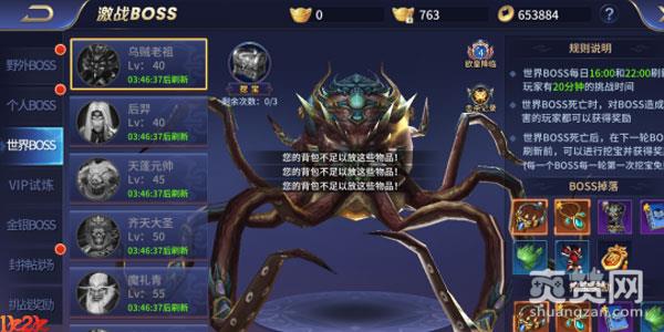世界boss被击杀后,在boss界面可以对每个击杀的boss进行寻宝