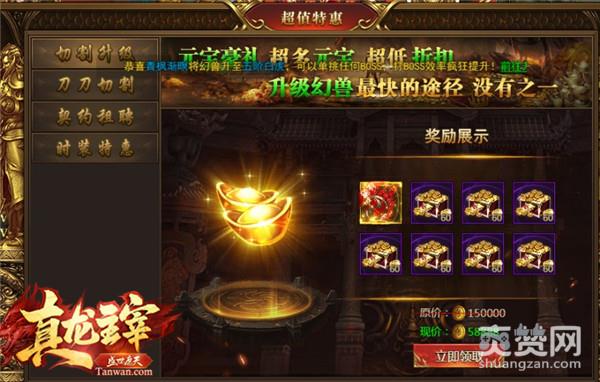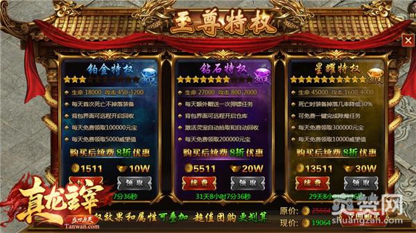除了幻兽之外,兄弟们还可以拥有一只属于自己的灵宠。不同于幻兽的征服战场,灵宠的功能是帮助兄弟们自动捡取掉落的装备和元宝等道具。在新区开服的第二天,小编强烈建议各位兄弟前往购买三个至尊特权,激活幻兽自动领取与回收,而且特权礼包还能提升大幅战力。