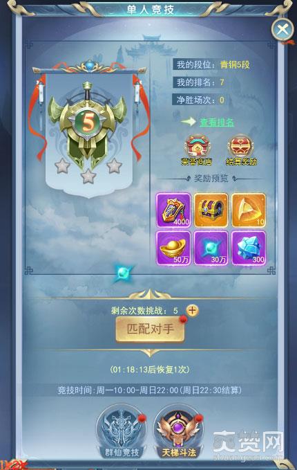 6.天梯斗法有排名奖励,系统将根据积分从高到低将玩家排名,上榜的玩家可以获得丰厚的奖励。奖励将于每周日晚上22:00通过邮件发放。