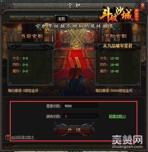 玩家通过控制面板的角色按钮进入官职,使用功勋来提升自己的官职。