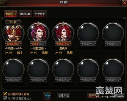 若是有人邀请自己加入队伍,则只要直接点击弹出的申请对话框里的确定按钮即可。第二种自己创建队伍的,建好之后同样点击进入“队伍”功能,然后点击附近玩家,看到合适的玩家就“邀请入队”即可。