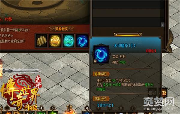 在《传奇世界网页版》中,水印碎片的获取渠道是十分丰富的,玩家可以通过各种渠道积累水印碎片,进而升级手中的水印。玩家可以通过参与游戏的日常活动,有机会能够获得水印碎片,次玩家也可以通过击杀野怪,也有一定概率获得。不过,以上的两个渠道并不是获取水印碎片的主要渠道,要想获得大量的水印碎片,最主要便是参与炼狱活动,击杀炼狱怪物。除此之外,每天与兄弟组队,参与多人副本也可以获取大量的水印碎片。