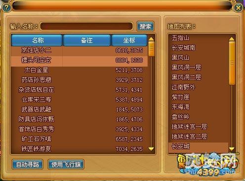 搜索传送:按快捷键N可以弹出NPC搜索界面,打开地图点击“查询”查询当前地图的NPC或点击左侧“日常”面板中的“功能”可以选中各个NPC使用飞行旗快速传送。