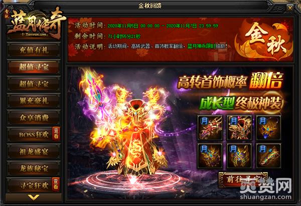 活动期间,高转武器、首饰概率翻倍!更有蓝月神兵与八转符文空降大陆,限时抽取!兄弟们快带上绝世神兵,佩戴高级符文杀敌人一个片甲不留。
