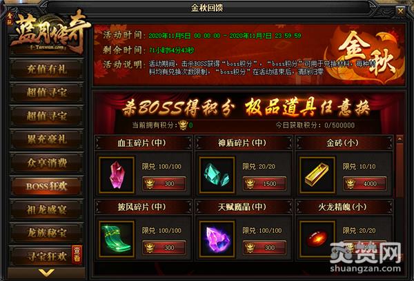 活动期间内,玩家击杀BOSS获得“boss积分”,“boss积分”可用于兑换碎片、钥匙、灵石等多种材料。但是兄弟们要注意哦,每种材料均有兑换次数限制,并且“boss积分”在活动结束后,将清除归零。所以大家要记得及时兑换哦。