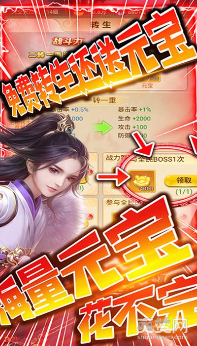 1k2k《剑仙缘》是一款以东方玄幻与中国武侠元素相结合为题材的角色扮演类手游。上线就送VIP25及8W元宝,在线天天送1000连抽!转生不仅免费更是会赠送海量元宝给玩家!