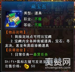 1.玩家在完成悬赏任务时,有几率获得藏宝图,第20环悬赏任务有几率获得高级藏宝图。