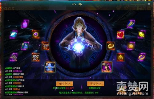4.使用元宝卜卦时,还可以额外获得积分,积分可以在积分商店兑换物品。