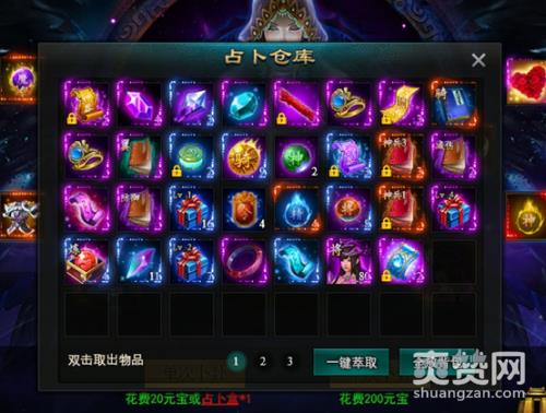 3.每次收取都会获得一个道具或者装备,获取的物品会存放在占卜仓库。