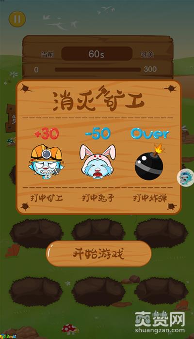 因为矿工十分狡猾,藏在了洞里,而兔子也在洞中,所以每次攻击你都要看清对象再打,不然误伤了队友不仅得不到分数,还会被扣分。此外,你还要小心矿工的炸弹,矿工的炸弹也会从洞里出来,如果不小心打到,游戏就会自动结束。