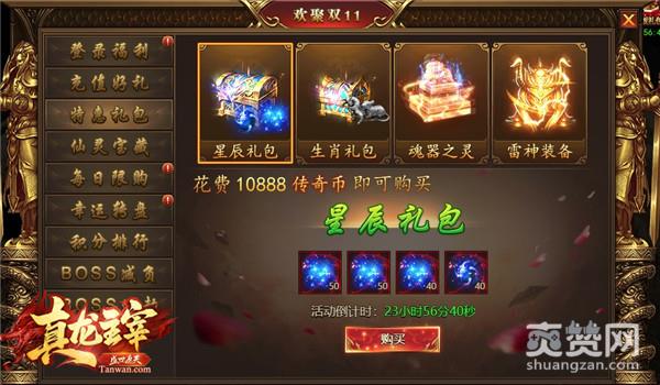 活动期间,玩家消耗传奇币便可购买相应的礼包,同时为了陪伴大家度过双十一,此次特惠礼包采取每日轮换的形式,每天都有新惊喜!第一天拥有材料礼包、转生修为和特戒礼包;第二天开启星辰礼包、生肖礼包、魂器之灵与雷神装备;第三天新增绝版守护;第四天拥有光翼礼包及神装礼包。多重好礼限时特价,兄弟们可千万不能错过哦。