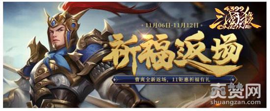 曹爽强势祈福返场,智如泉涌收官,《4399三国杀》双十一惠不可挡!游戏主界面左上角,点击“祈福”按钮,进入祈福界面。快来祈福得曹爽吧!