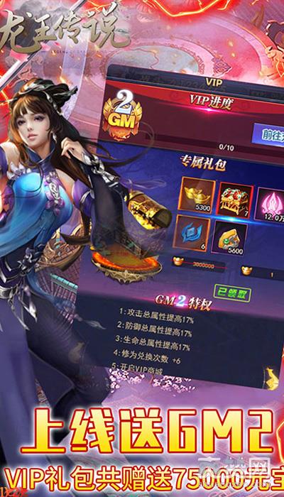 1k2k《龙王传说》是一款国风写实2.5D的仙侠RPG产品,手持3把光武战斗的游戏。新版本新福利强势来袭登录就送GM2,58888元宝,1000次抽奖,1800元充值卡,1元宝领取总价值5000RMB的VIP1-VIP25大礼包。仙魔灵3种族切换。各类法宝多重变身,脚踩法轮、背装翅膀、怀抱美人。在这里你将转世到虚构的修真世界展开一段全新里程,游戏内用现代时尚的观念全新演绎神兵。