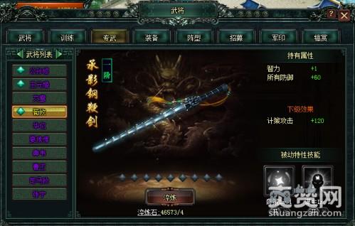 荀攸的专武叫做“承影刚鞭剑”,附带两大专武技能,专武一“奇策”可以大幅度降低友军受到的计策伤害,专武二“谋主”可以提升己方的计策攻击,且效果无法被驱散!
