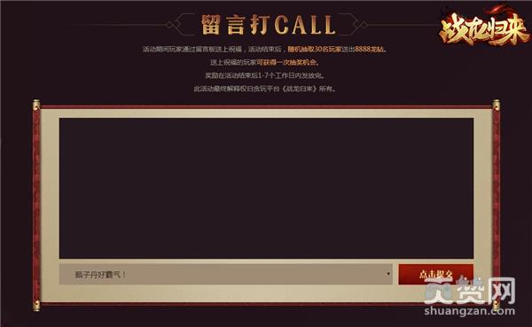 活动期间玩家通过留言板送上祝福,活动结束后,随机抽取30名玩家送出8888龙钻!每位送上祝福的玩家可获得一次抽奖机会。兄弟们快来为丹哥送上美好的祝福吧。