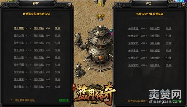 传世神兵的另一个获取途径便是可以在盟重城安全区中心处的“神炉”中,使用“传世宝钻”兑换获得。传世宝钻可通过龙族寻宝、商城购买的方式来加以获得。除此之外,通过锁妖塔三层以上,以及每天参与锁妖塔活动,也是能够获得珍贵的传世宝钻的。而且在龙族寻宝中寻得的多余传世神兵,还可以通过神炉炼化成为传世宝钻哦。