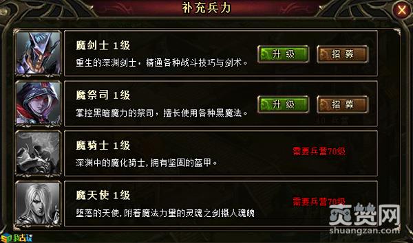 因为不同兵种属性有所不同,所以选择出战的兵种时除了战斗力之外,还要充分考虑敌人的特性。像是魔骑士,拥有坚固的盔甲,防御属性高,所以更适合去对抗伤害高的魔法类型的敌人。玩家可以直接通过战斗-部队界面调整人物和部队、英灵、子女的相对位置。—次可以放置—种士兵在阵型上,阵型上的士兵可自动补充数量,前提是拥有足够的招募士兵人数。如果战斗之后发现士兵人数不足,可以按招募按钮回到前面所提的招募面板补充兵力