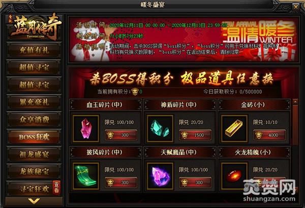 活动期间内,玩家击杀BOSS可以获得由战神授予的“boss积分”,“boss积分”可用于兑换碎片等多种材料,每种材料均有兑换次数限制。“boss积分”在活动结束后,清除归零,记得及时兑换使用哦。