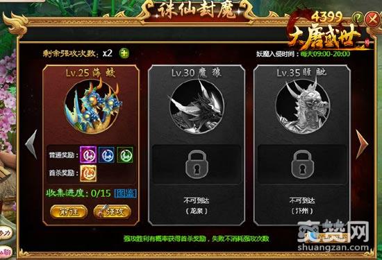 点击对应活动图标即可打开诛仙封魔界面,如下图所示: