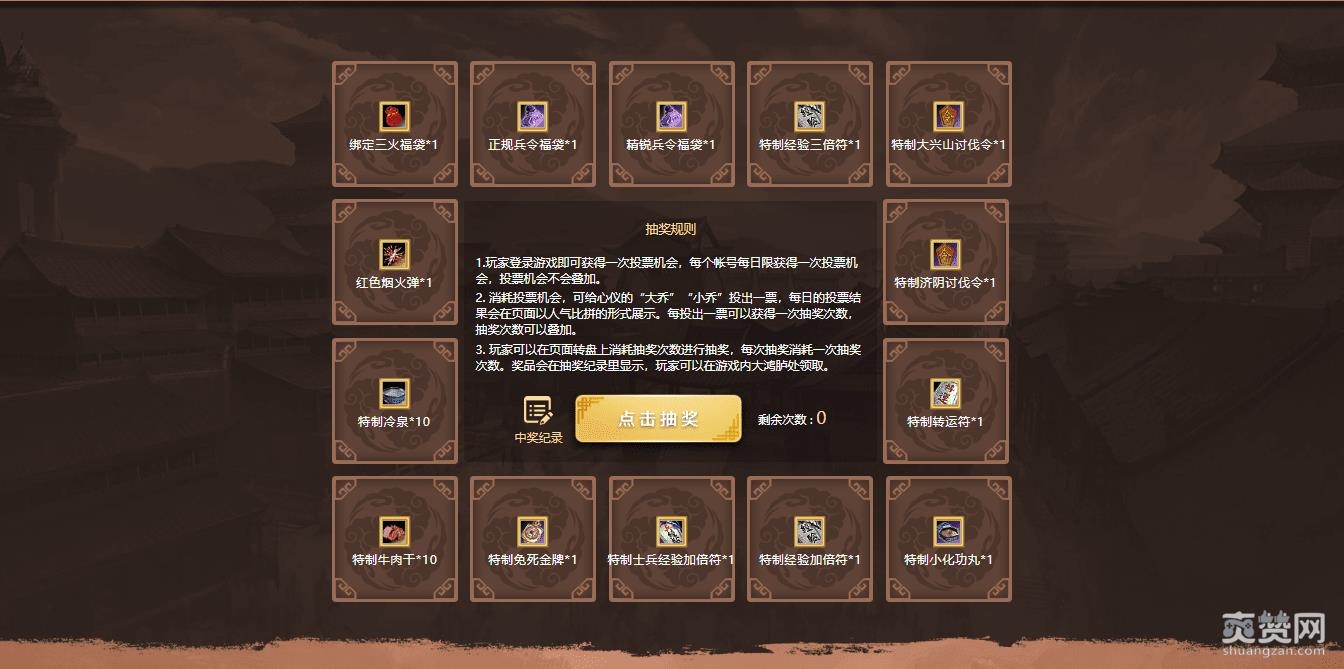 每天为喜爱的佳人投票,即可获取一次抽奖机会。奖池中含绑定三火福袋,正规兵令福袋,精锐兵令福袋等高额好礼!活动截止后,根据投票结果,人气高的佳人将会给全服送上特殊礼包一份。