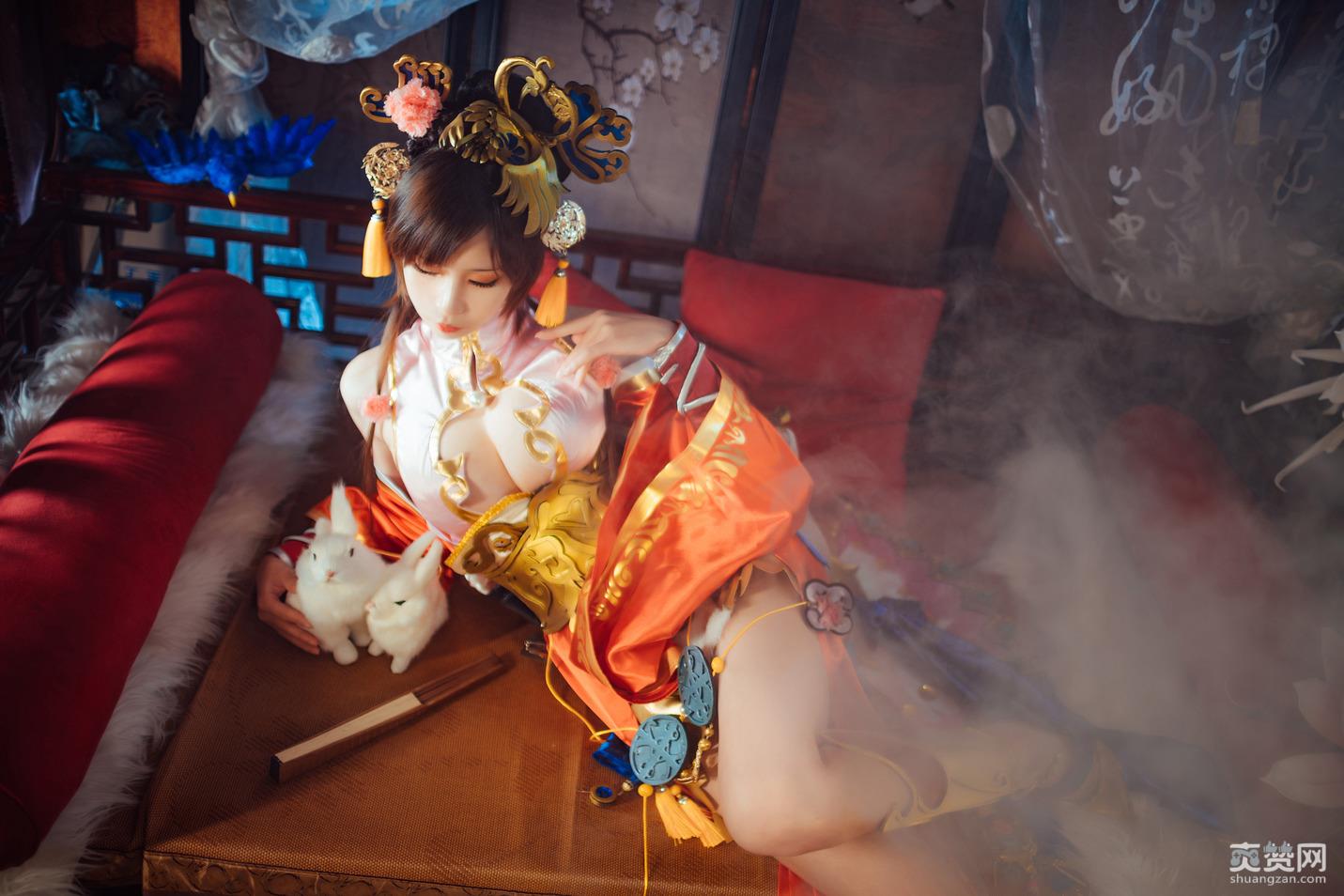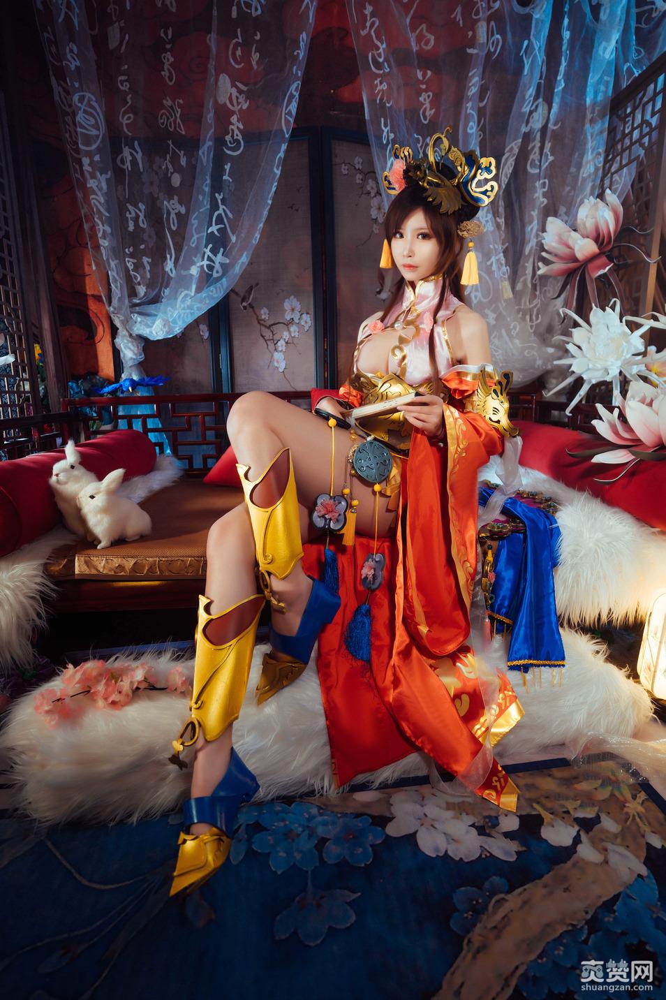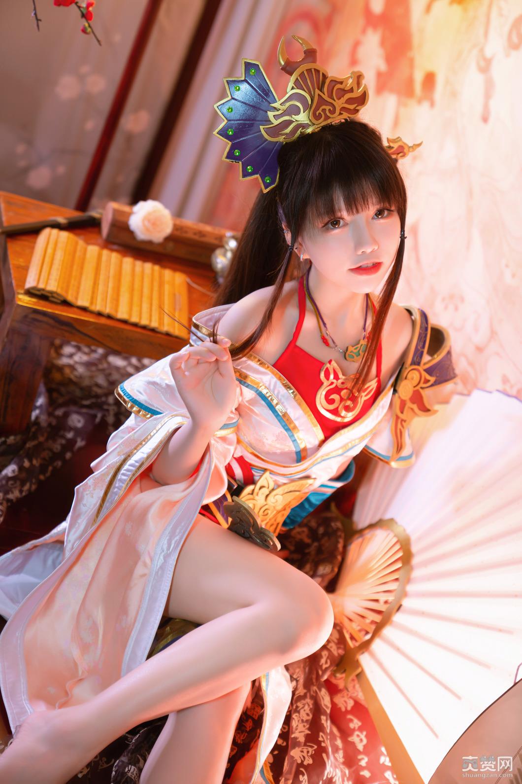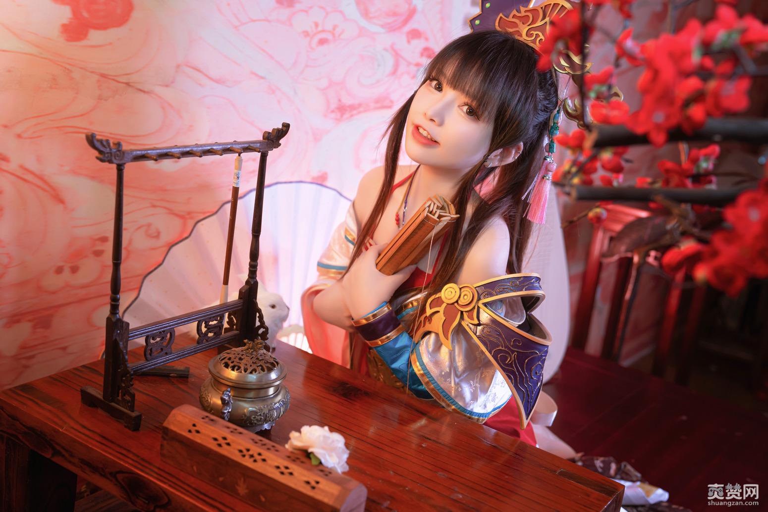 为庆贺游戏开启不删档测试,美女coser爱老师_PhD和六二二同学带来了江东二乔的COS。