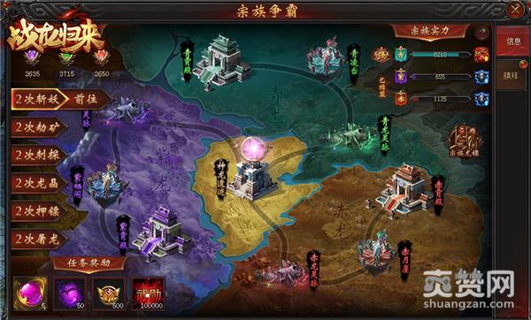 第三位要介绍的是“拓拔飞”,他负责提供宗族任务。当我们刚进入游戏时,第一时间会在三大宗族即紫龙族、青龙族、赤龙族中选择一个加入。加入宗族后就可以完成宗族任务了,宗族任务分为三大模块“信息,膜拜,可挑战boss”,每个模块不同但都可以为玩家提供大量的增益,兄弟们不要忘了每天都做一下宗族任务哦。