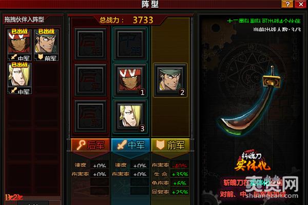 打开阵型面板,将左侧的伙伴拖入阵型对应位置里即可。面板中间可查看阵容总的战斗力。激活斩魂刀后,阵型站位可影响斩魂刀对伙伴的加成。
