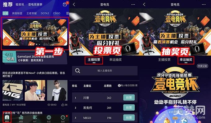即日起登录壹电竞APP,从资讯首页进入活动区,为主播投票打call,即可送心仪主播进入表演赛,投票的同时还可瓜分百万好礼,并且有机会抽中表演赛参赛资格(共6个),和心仪主播一起打一场甜蜜组排。