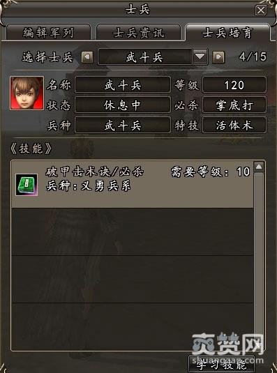 除了攻击、自动攻击、休息、骑乘、士兵收放、士兵战术和专长技能外,其他所有的特殊技都需要使用技能书才可以习得。玩家获得这些技能书后,右键点击技能书,即可学会该技能。