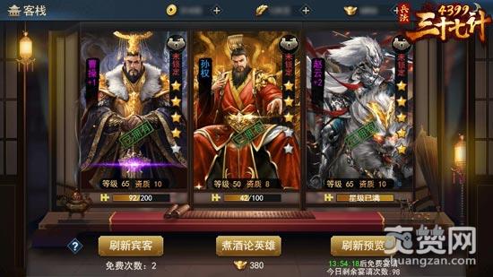 点击客栈中的煮酒论英雄按钮,可进行宴请,宴请时有一定几率获得当前武将中任一武将的将魂。