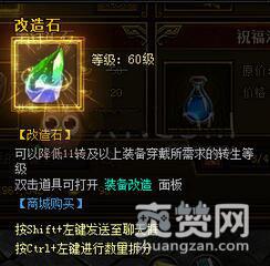 改造石:装备改造时所需的唯一材料,可以改造11转及以上装备,通过改造装备能获得特殊效果“神恩”;