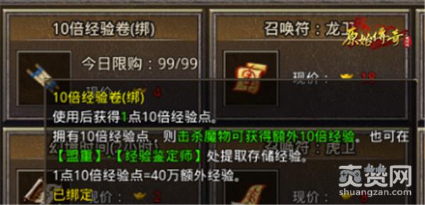 但即使这样,我们的10倍点依旧很少,所以我们需要去购买一些10倍经验卷(绑),自然10倍经验卷是越多越好,所以需要把这99个都给买了。然后再去活动-开服礼包里把有10倍经验卷轴的礼包也给买了,这样也能靠着礼包的资源稳固角色的战斗力,也提升了本职业的排行榜排名。