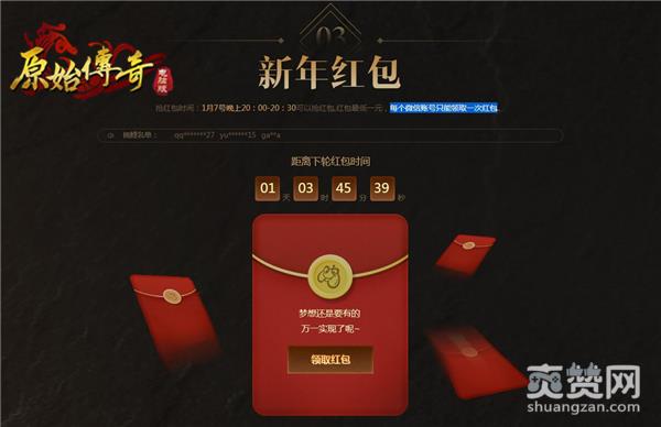 1月7日晚上20:00-20:30,玩家前往活动界面可以参与抢红包活动!现金红包雨等你来拿!注意每个微信账号只能领取一次红包哦。
