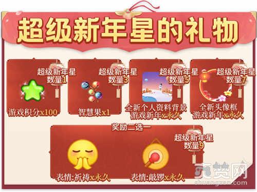 根据您在活动期间累计领取的“超级新年星”数量,还可以领取额外礼物哦!