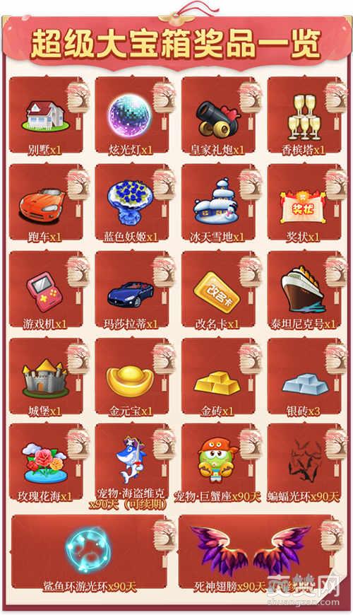 2. 在达到50级后,每额外消费5000金币都能解锁1份超级大宝箱;