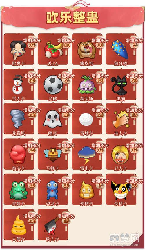 活动期间,接收以下非绑定整蛊道具不会扣除游戏积分,并且还会增加游戏积分!