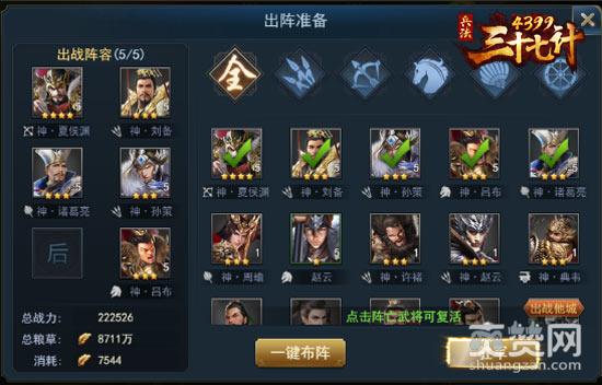 无论是进攻部队或是防守部队,都需要派满5名武将才可组建一支队伍,不满员的队伍无法派遣的战场中。