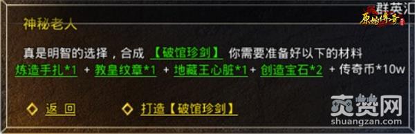 教皇纹章,打开首领挑战,里面的米尔教皇,打死就有几率掉落;地藏王心脏是地藏魔王掉落;创造宝石是70级以上首领掉落;炼造手扎需要完成一转就能获得。所有的材料集齐就能合成破馆珍剑,前期基本能满足打怪的需求。